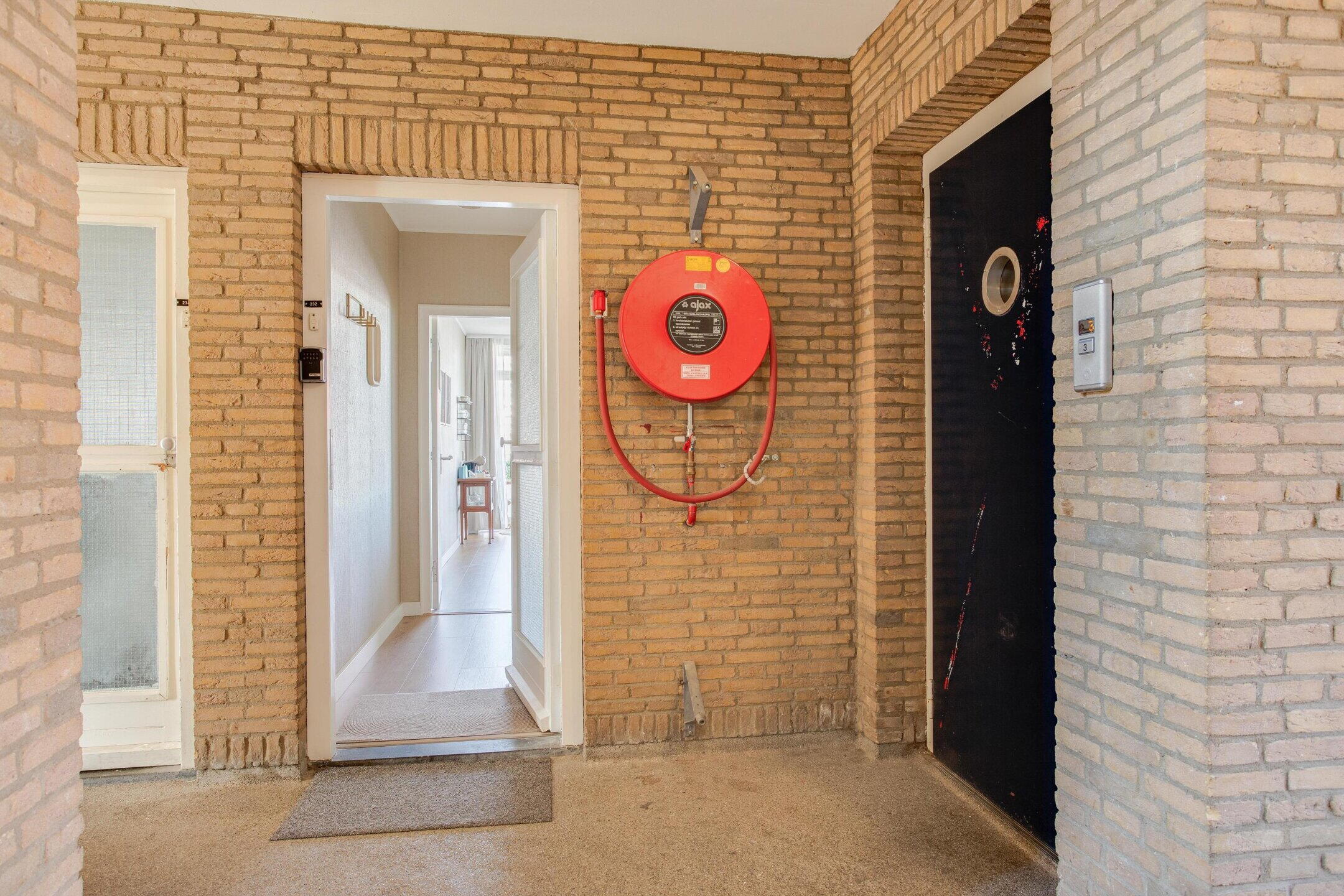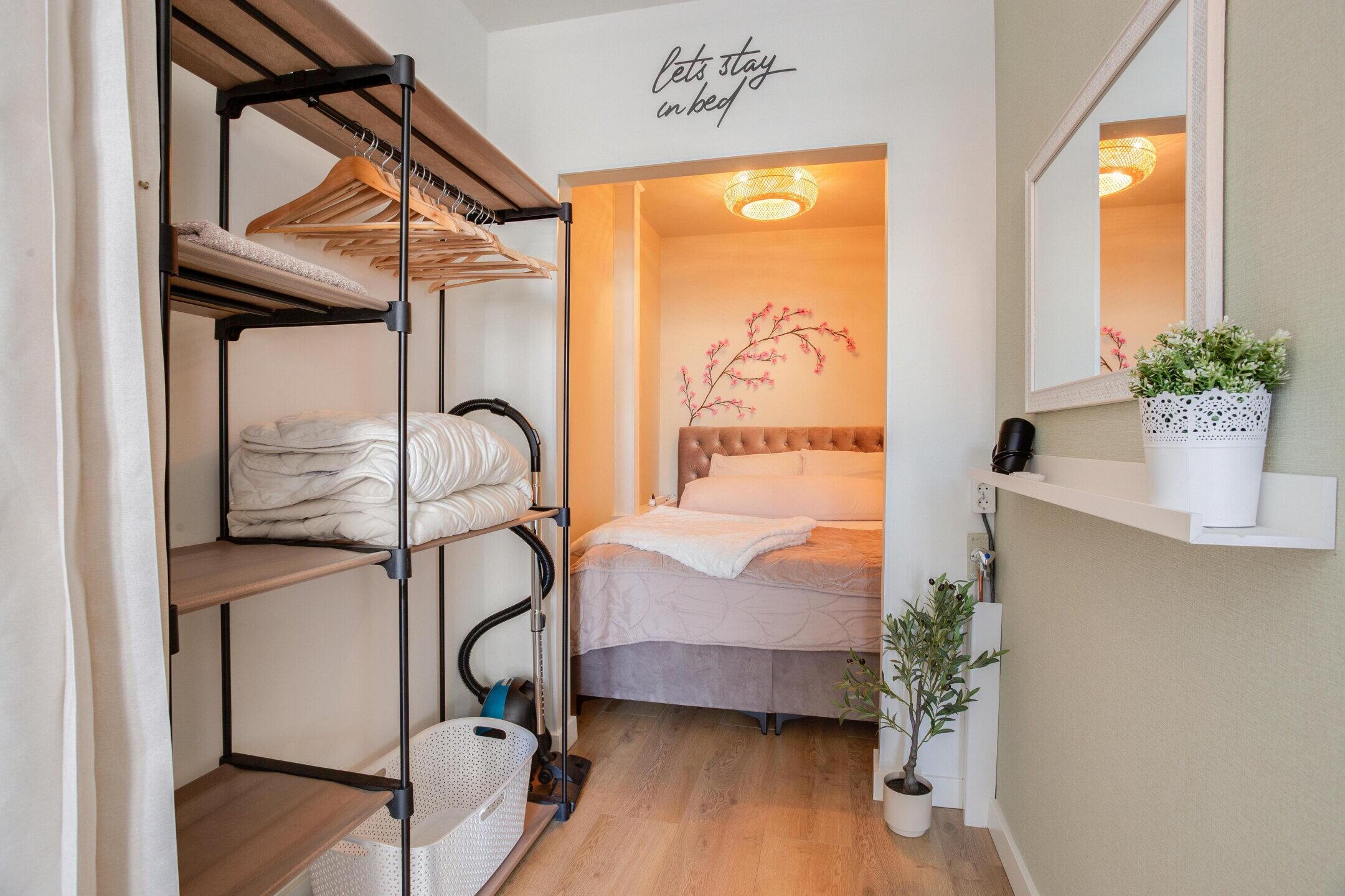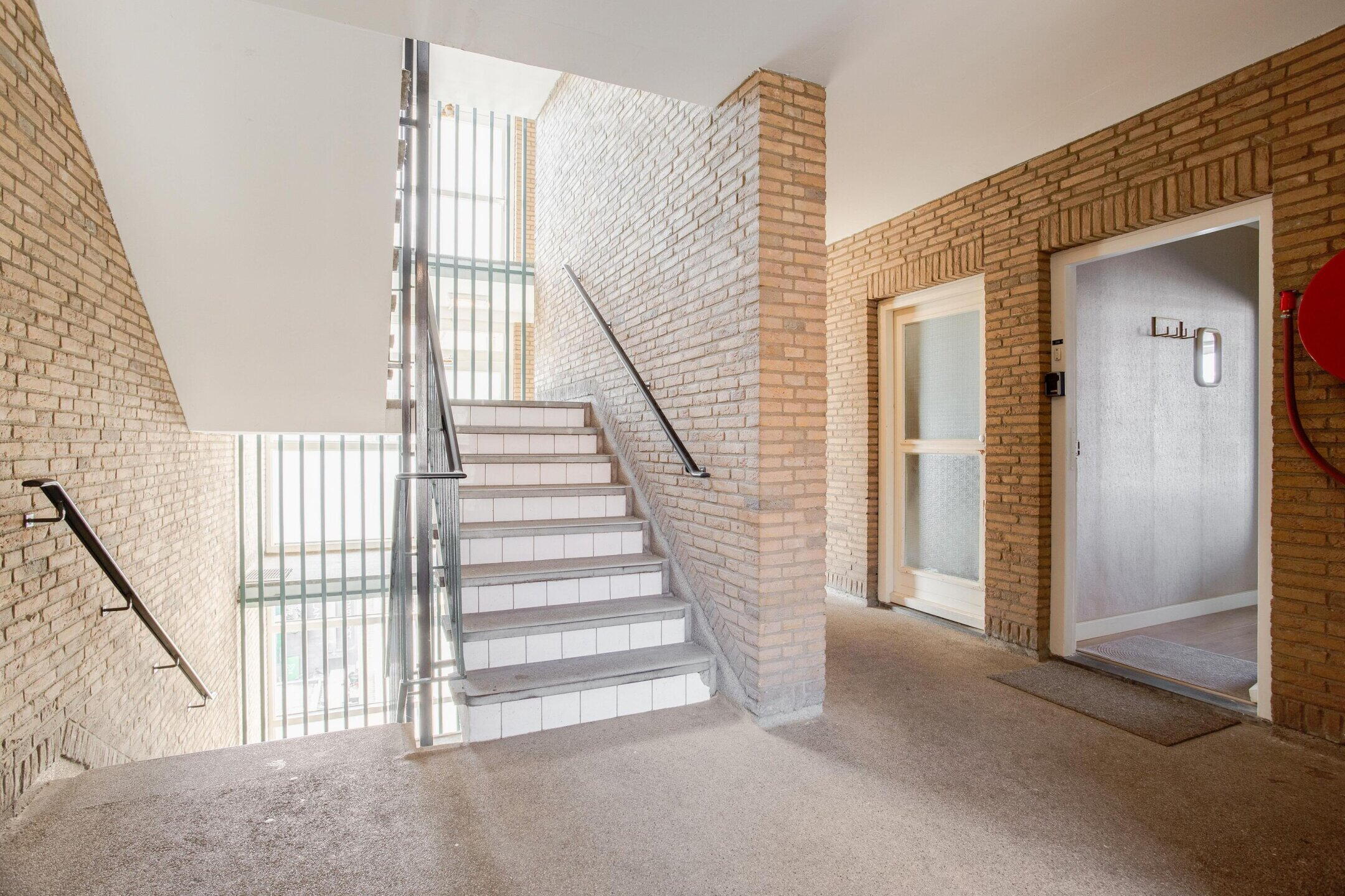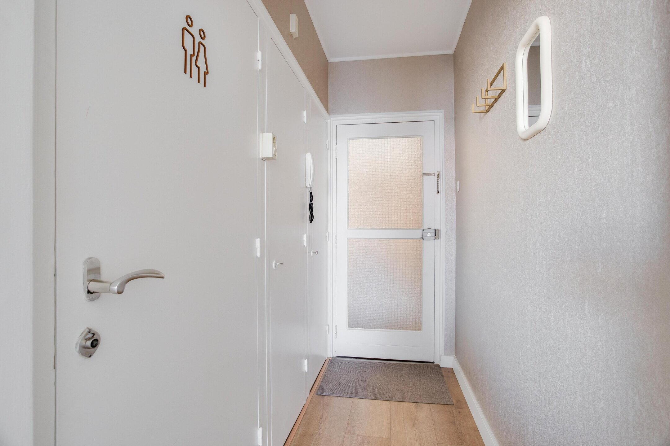 Bij binnenkomst kom je via de centrale entree van het complex, met trap en lift, bij de inpandige toegang tot de studio. De hal beschikt over meerdere vaste kasten, ideaal voor opslag en garderobe, waarna je doorloopt naar de woon-/slaapruimte en de keuken.