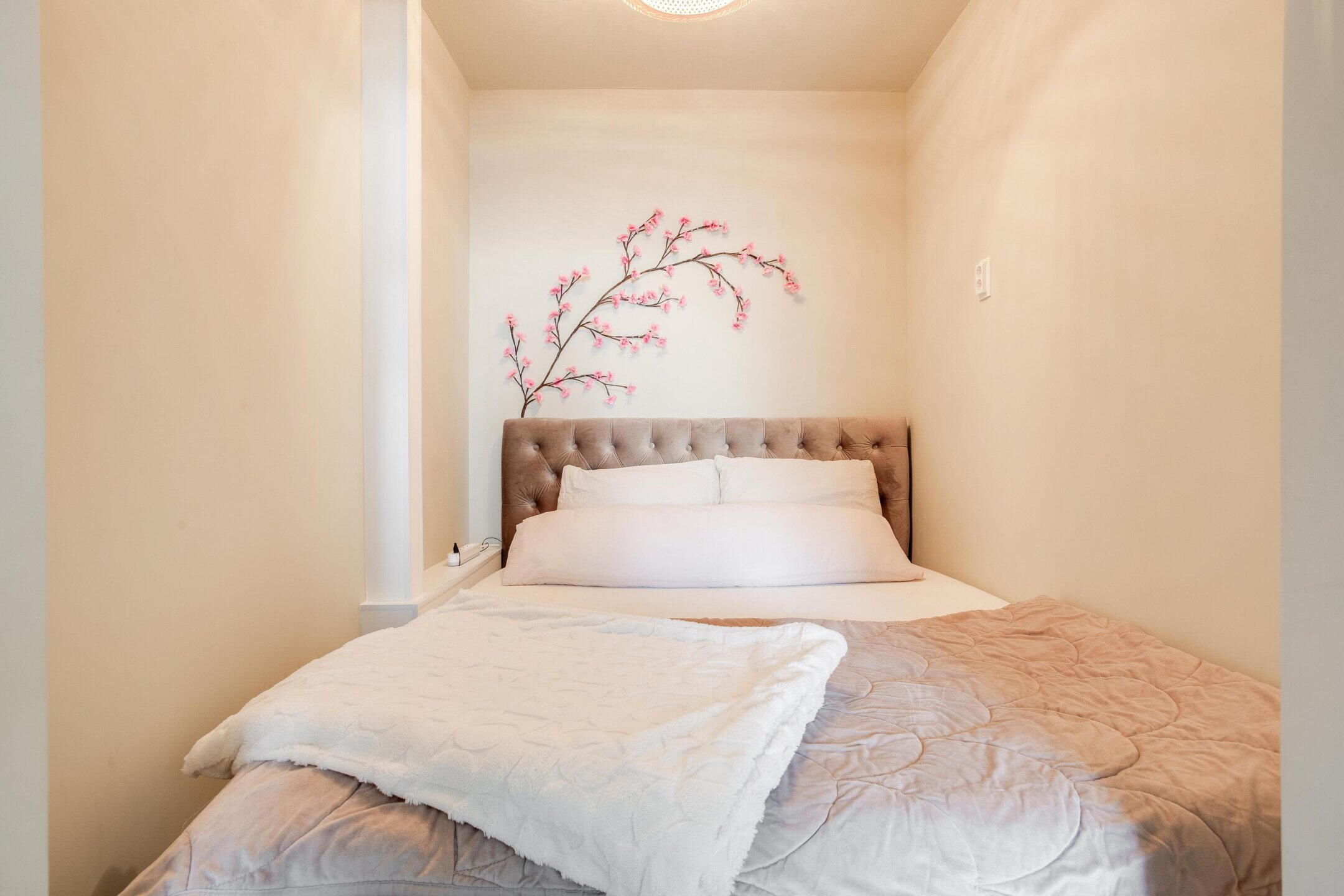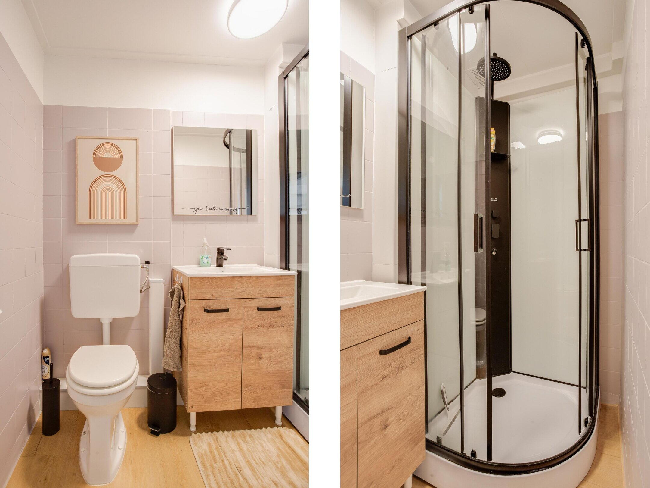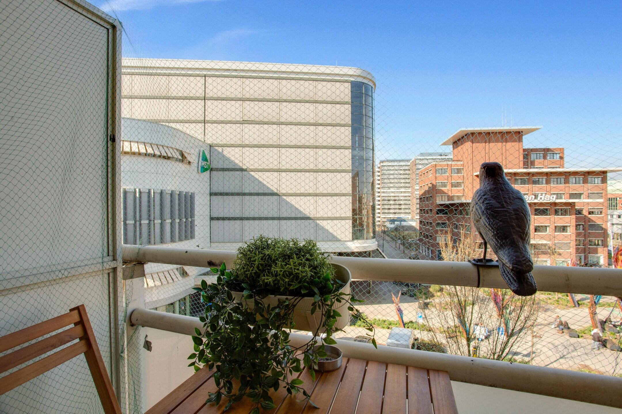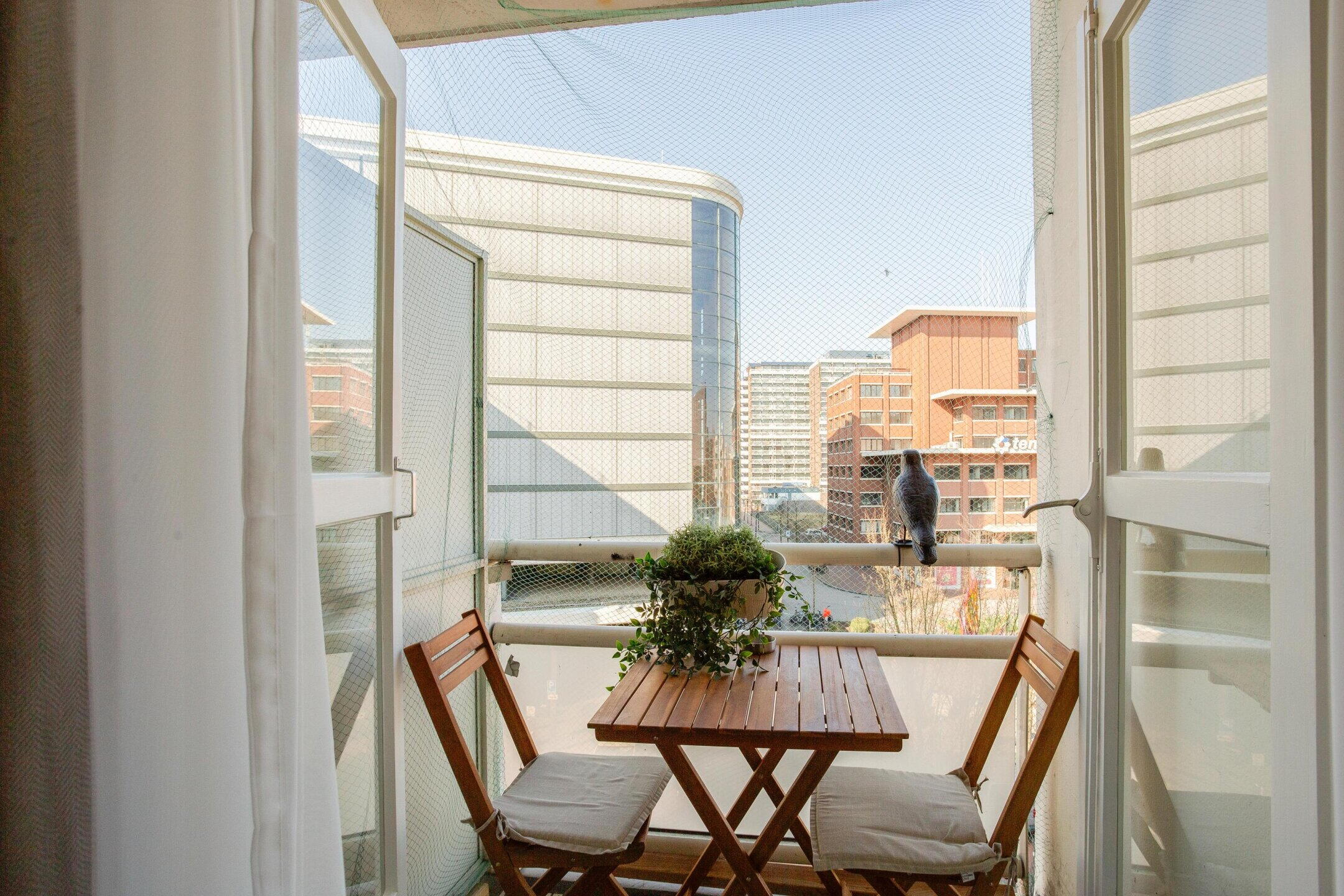 De studio is praktisch opgezet met één open ruimte voor wonen en slapen, waardoor het geheel ruimtelijk en overzichtelijk aanvoelt. De aparte keuken zorgt ervoor dat koken en leven prettig van elkaar gescheiden zijn. Grote raampartijen brengen veel daglicht binnen en geven toegang tot het balkon. Dit balkon is misschien compact, maar zeker bruikbaar en bovendien gericht op de avondzon — een fijne plek om de dag af te sluiten.